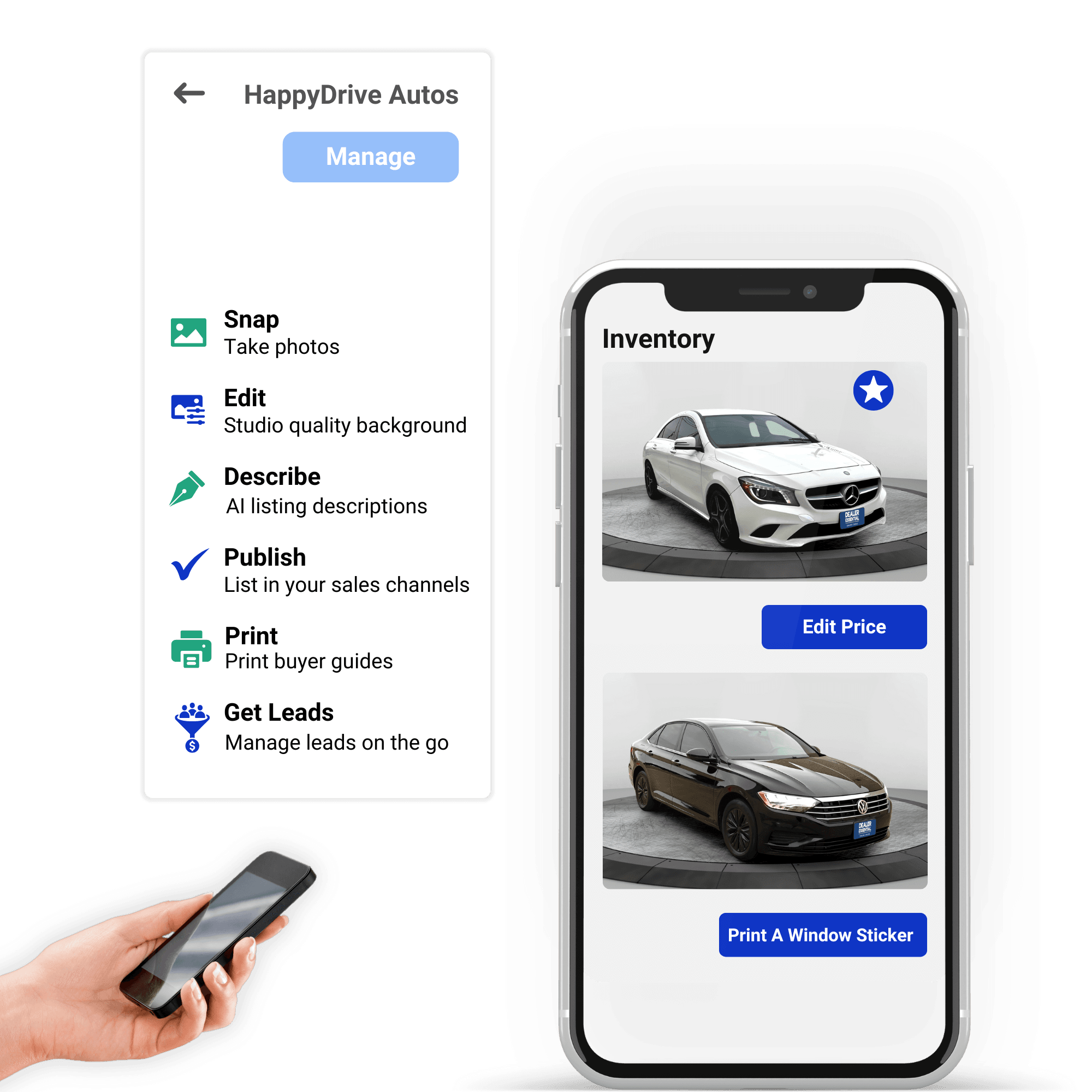 Work Smarter, Not Harder: Take photos, update your vehicle listings, and put them on your sales channels — all from your phone.